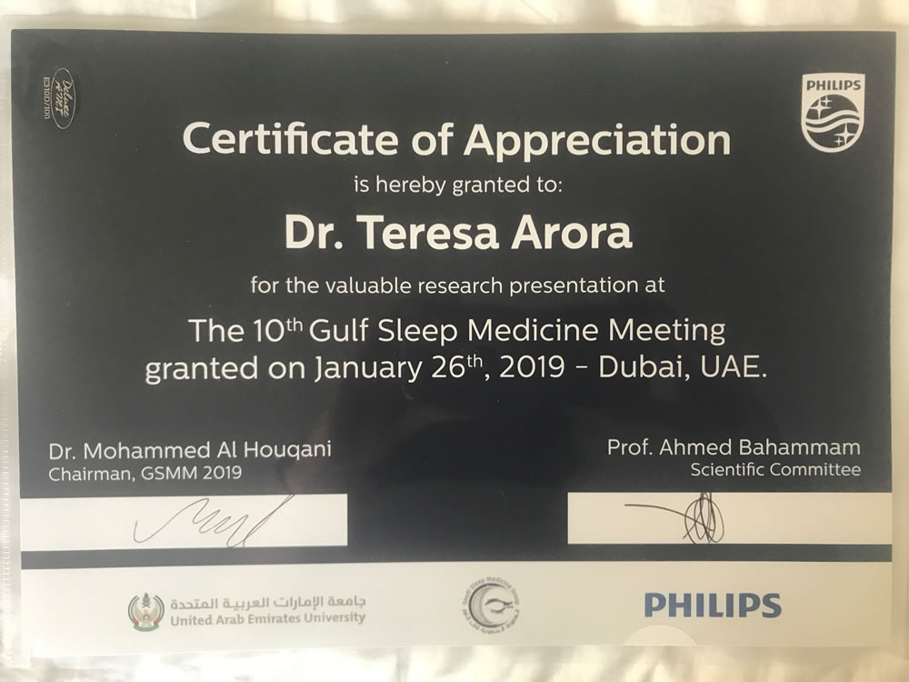 Alhelali E, & Arora T. Exploring the relationship between sleep and depersonalization. 33rd Annual Meeting of the Associated Professional Sleep Societies. San Antonio, Texas, USA; June 8-12, 2019.